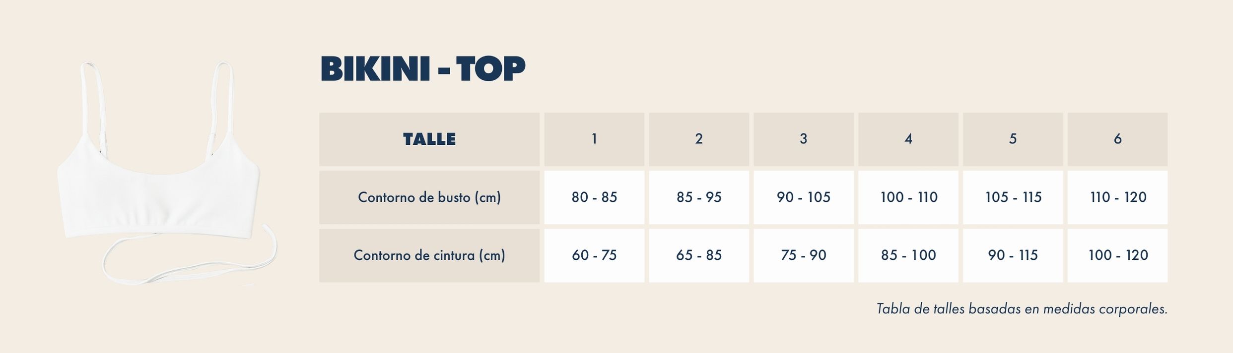 Marti, nuestra modelo, usa talle 3. Sus medidas son  72 cm de cintura / 105 cm de cadera