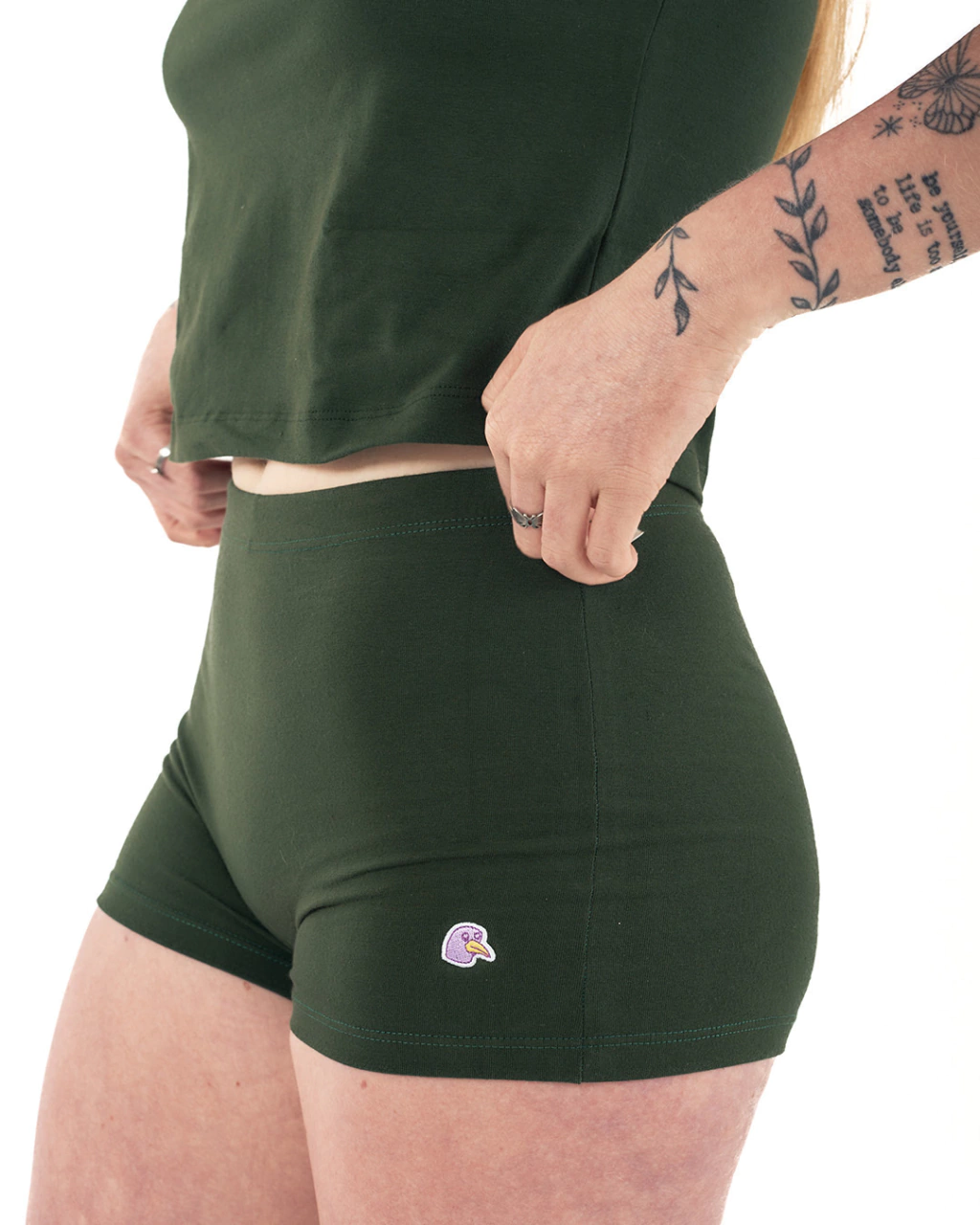 Bóxer para personas con vulva, de algodón con elastano tiro alto, anatómicas, con elástico embutido en cintura, de color verde inglés.