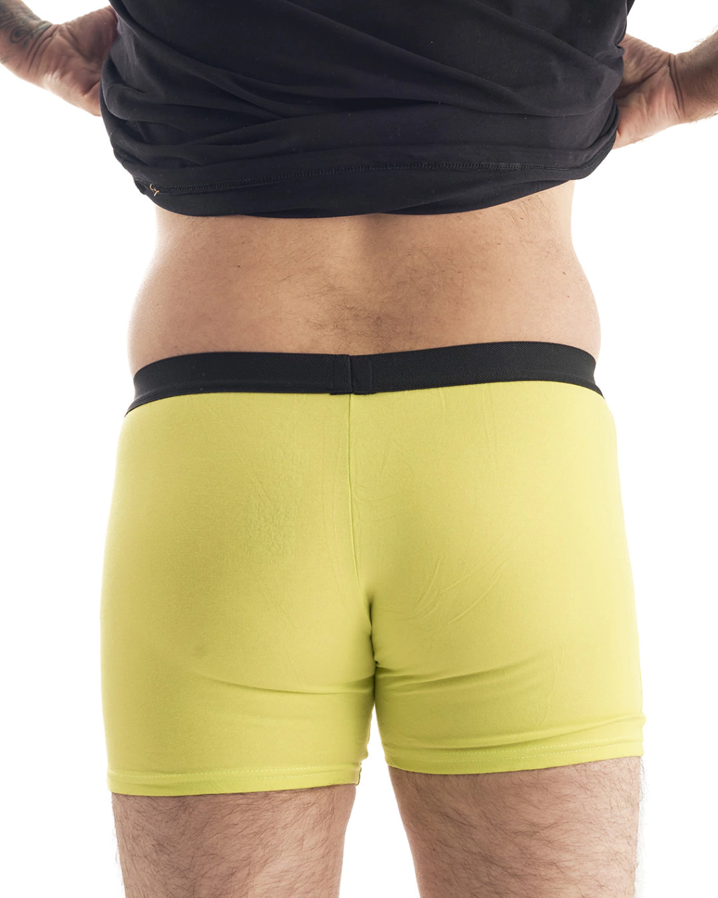Boxer de algodón con lycra lima; con elástico afelpado color negro en cintura.