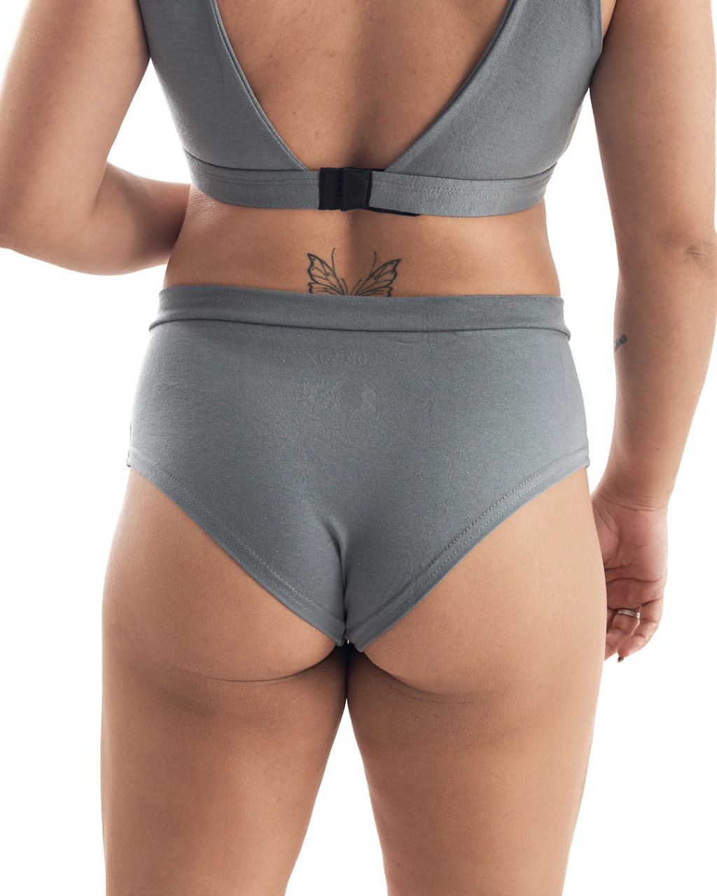 Panties tiro alto de algodón con lycra, de color gris oscuro.